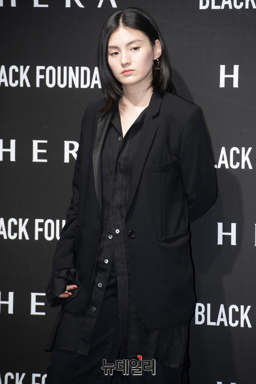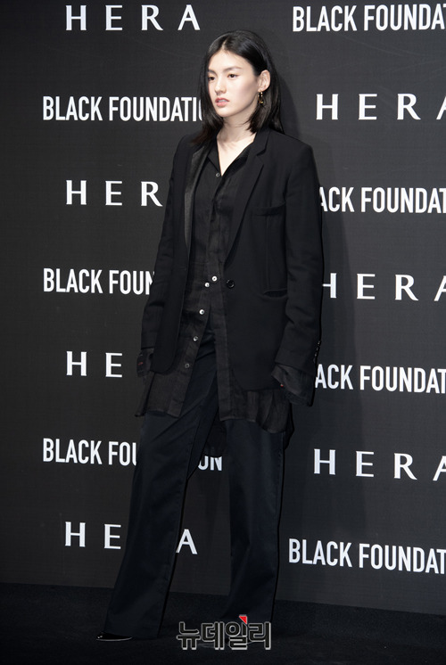 배우 김용지가 14일 오후 서울 강남구 SJ쿤스트할레에서 진행된 '블랙 파운데이션' 신제품 론칭 행사에서 포토타임을 갖고 있다. '블랙 파운데이션'은 총 12가지 색으로 구성됐다. 4월 1일부터 판매.
