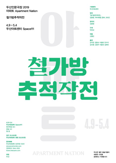 연극 '철가방추적작전'이 '두산인문극장 2019: 아파트'의 문을 연다.