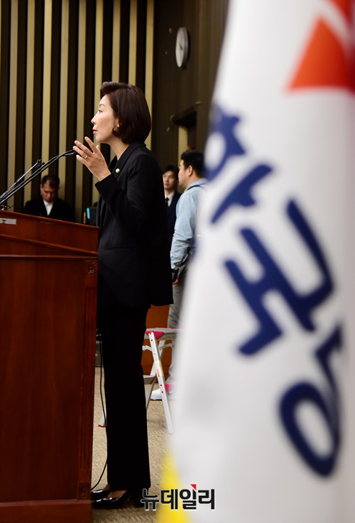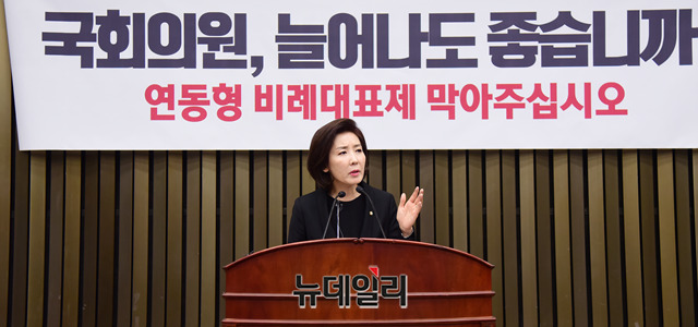 나경원 자유한국당 원내대표가 15일 오전 국회에서 열린 비상의원총회에서 모두발언을 하고 있다.