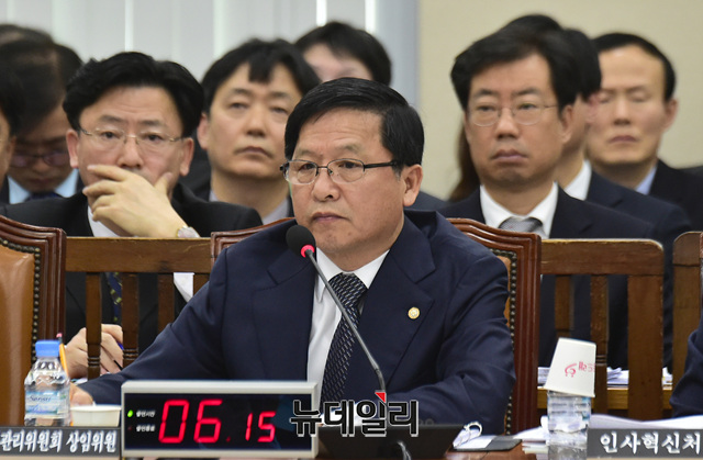 조해주 중앙선거관리위원회 위원이 15일 오전 국회 행정안전위원회 전체회의에 출석해 의원들의 질문에 답하고 있다.