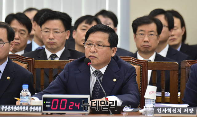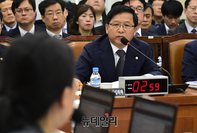 조해주 중앙선거관리위원회 위원이 15일 오전 국회 행정안전위원회 전체회의에 출석해 문재인 대통령선거 후보 캠프에서 공명선거 특보로 활동했다는 의혹에 대해서 해명하고 있다.