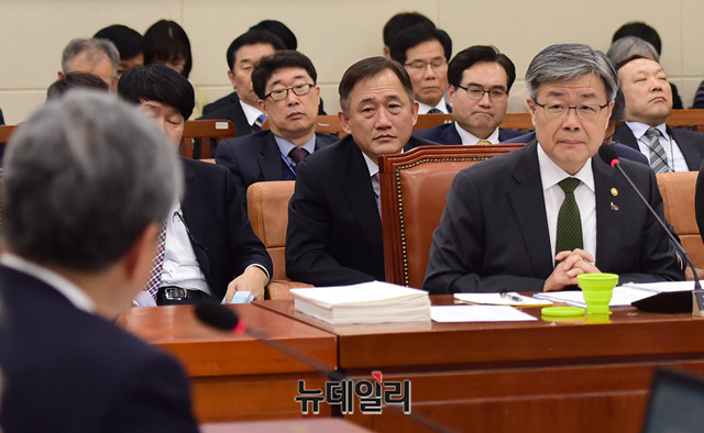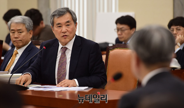 이상돈 바른미래당 의원이 15일 오후 국회에서 열린 환경노동위원회 전체회의에서 이재갑 고용노동부 장관에게 질의를 하고 있다.
