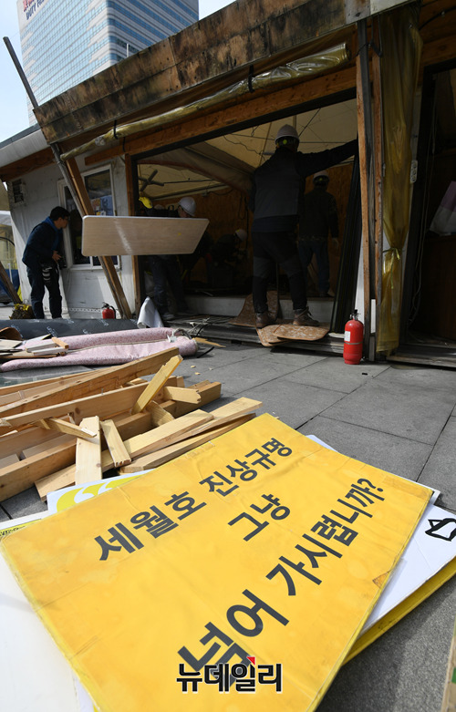 [포토] 철거하는 광화문 세월호 천막