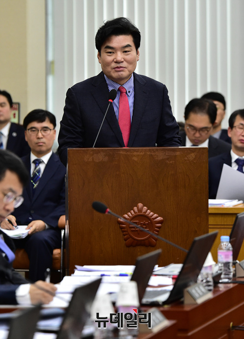 원유철 자유한국당 의원이 18일 오전 국회 국방위원회에서 열린 전체회의에서 법안제안 설명을 하고 있다.