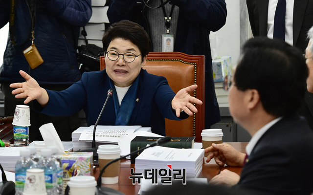 임이자 환경노동위원회 소위원장이 18일 오전 국회에서 열린 고용노동소위회의에서 발언을 하고 있다.