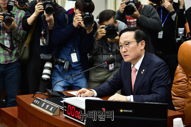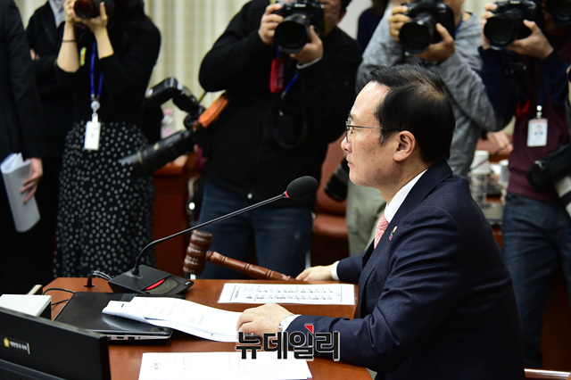 홍영표 더불어민주당 원내대표가 18일 오후 국회에서 열린 운영위원회 전체회의에서 의사진행을 하고 있다.