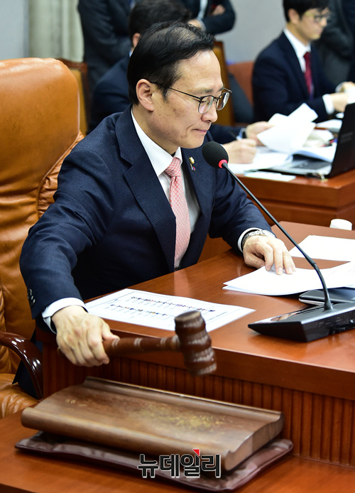 [포토] 의사봉 두드리는 홍영표 국회 운영위원장