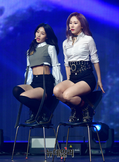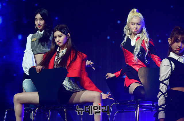 신인걸그룹 '에버글로우'가 18일 오후 서울 광진구 예스24라이브홀에서 열린 데뷔쇼케이스에서 수록곡 무대를 선보이고 있다.