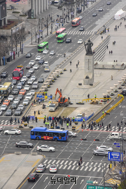 서울 광화문 광장에 설치된 세월호 천막 14개 동이 18일 오후 철거됐다. 천막이 철거된 자리에는 현재 절반의 규모로 다음달 16일 '기억·안전 전시공간'이 조성될 예정이다.