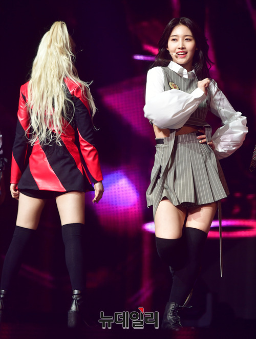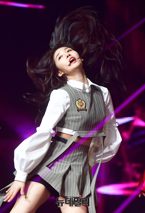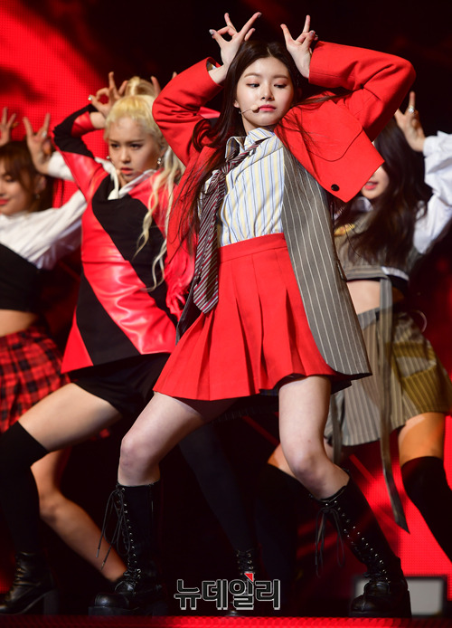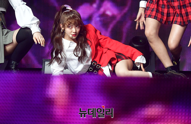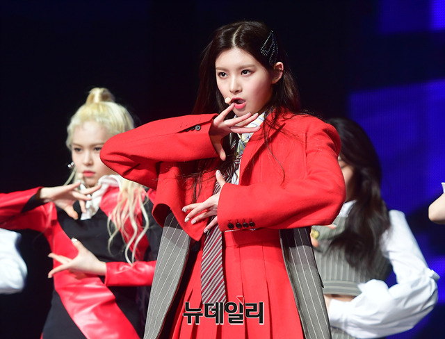 신인걸그룹 '에버글로우' 멤버 이유가 18일 오후 서울 광진구 예스24라이브홀에서 열린 데뷔쇼케이스에서 포토타임을 갖고 있다.