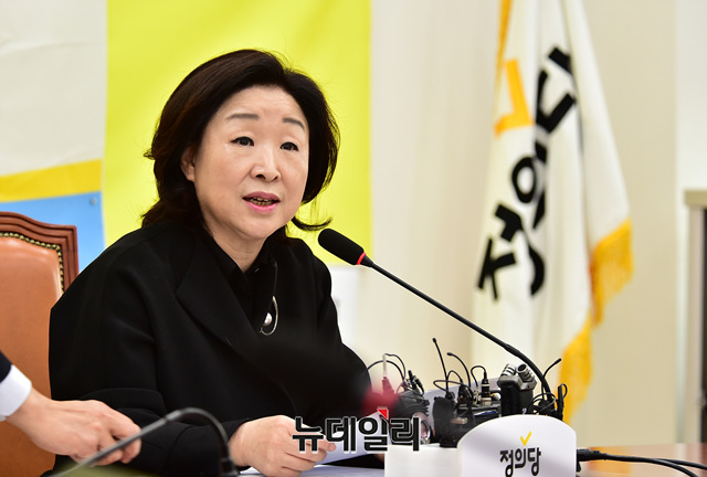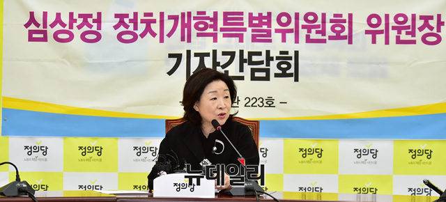 심상정 정치개혁특별위원회 위원장이 19일 오전 국회에서 열린 법안설명 기자간담회를 갖고 있다.