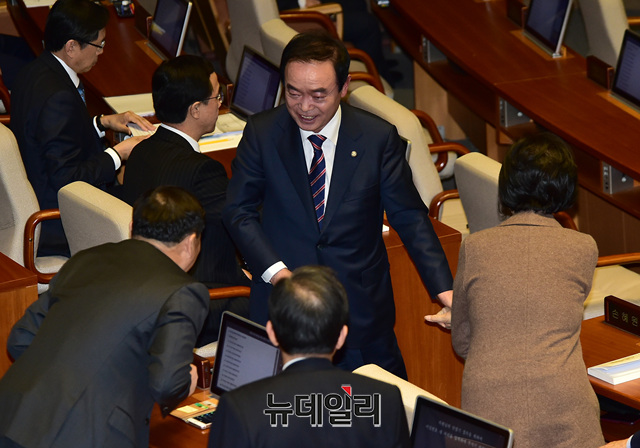[포토] 동료의원들과 인사 나누는 장병완 민평당 원내대표