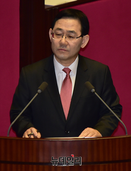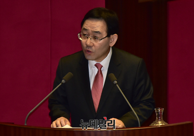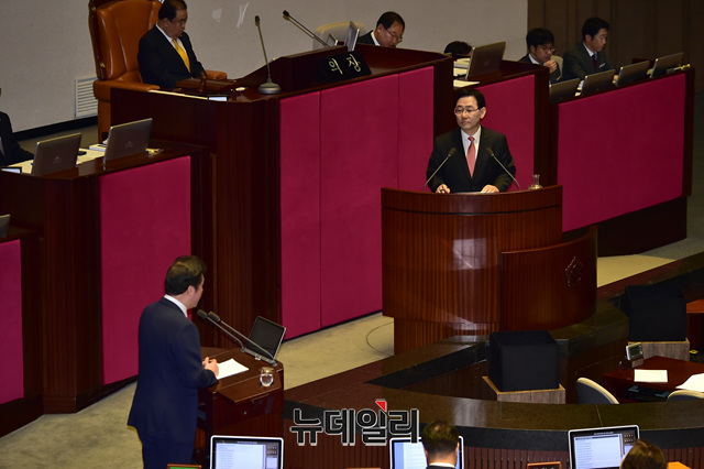 주호영 자유한국당 의원이 19일 오후 국회에서 열린 본회의에서 대정부질문을 하고 있다.