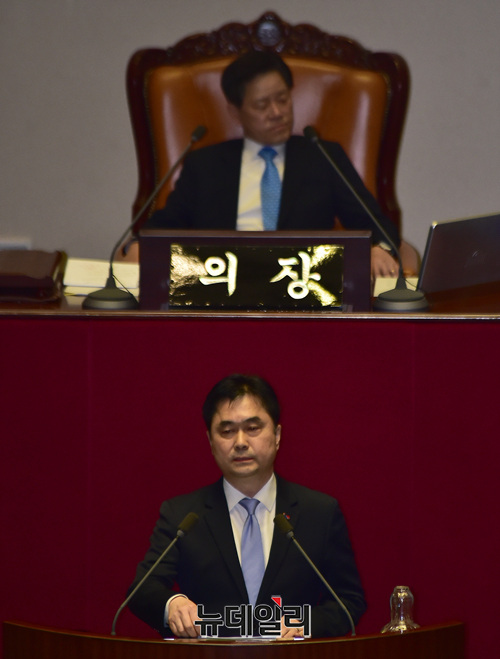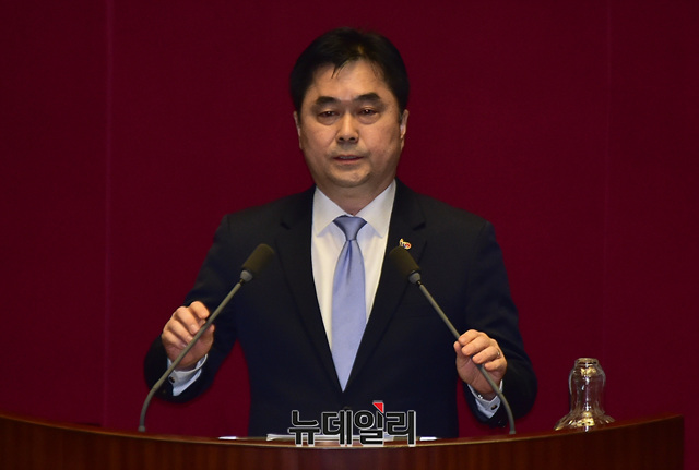 김종민 더불어민주당 의원이 19일 오후 국회에서 열린 본회의에서 대정부질문을 하고 있다.
