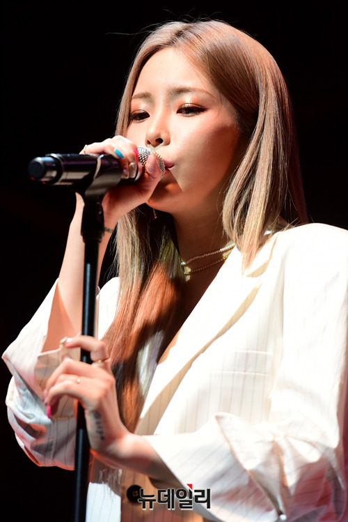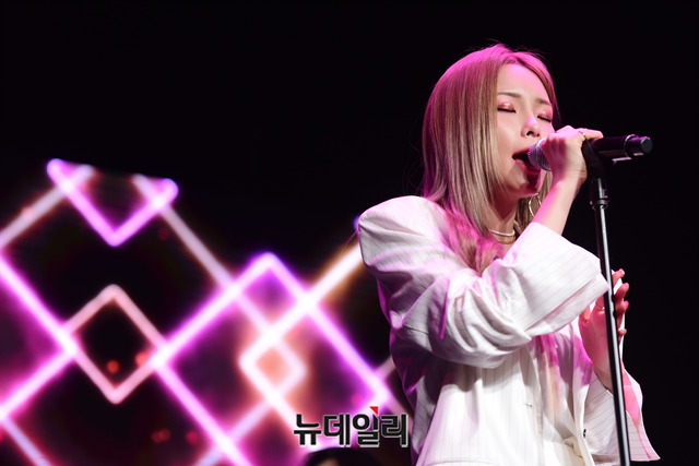 가수 헤이즈가 19일 오후 서울 마포구 무브홀에서 열린 첫 번째 정규앨범 '쉬즈 파인(She's Fine)' 쇼케이스에서 발매 기념 쇼케이스에서 수록곡을 선보이고 있다. 타이틀곡 '쉬즈 파인'을 포함해 총 11곡으로 구성된 이번 앨범은 가상의 여자 배우를 화자로 설정해 그녀의 사랑, 이별, 삶 등 다양한 이야기를 담았다. 음원은 오후 6시 공개된다.