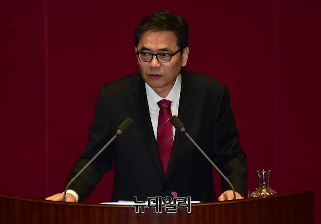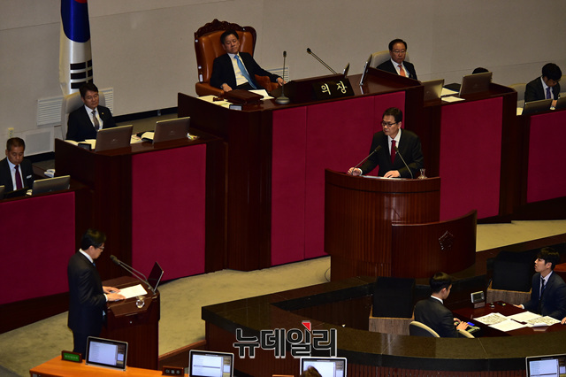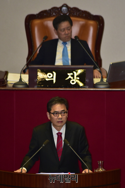 곽상도 자유한국당 의원이 19일 오후 국회에서 열린 본회의에서 대정부질문을 하고 있다.