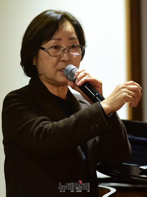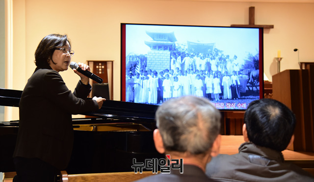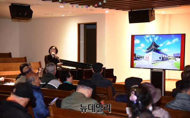 김효선 이승만포럼 사무총장이 19일 오후 서울 중구 정동제일교회 아펜젤러홀에서 열린 제 97회 이승만포럼에서 주제발표를 하고 있다.