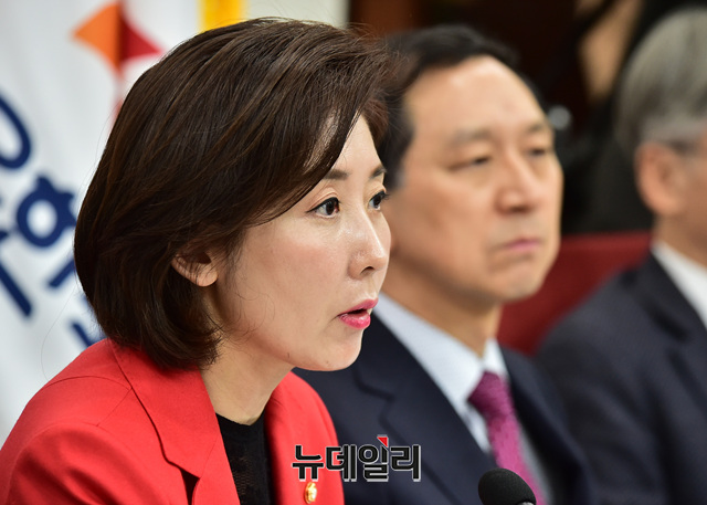 나경원 자유한국당 원내대표가 20일 오전 국회에서 열린 '청와대 특감반 진상조사단 및 김경수 드루킹 특위 연석회'의에서 모두발언을 하고 있다.