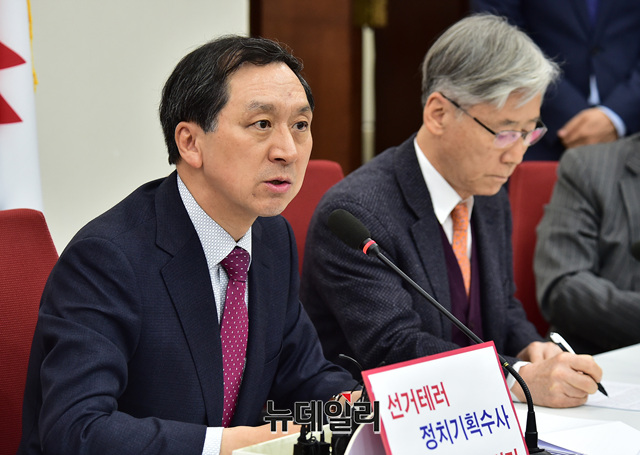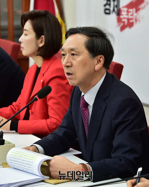 김기현 전 울산광역시장이 20일 오전 국회에서 열린 자유한국당 '청와대 특감반 진상조사단 및 김경수 드루킹 특위 연석회'의에 참석해 발언을 하고 있다.