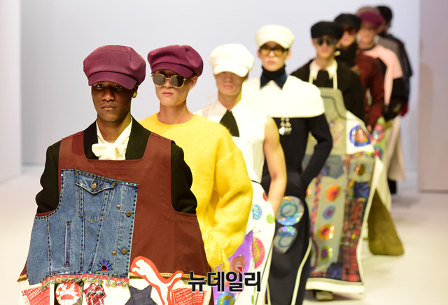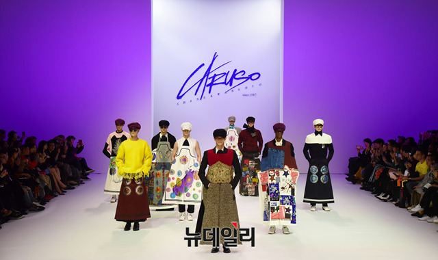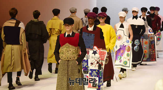 장광효 디자이너의 패션브랜드 'CARUSO(카루소)'가 20일 오전 서울 중구 동대문디자인플라자에서 열린 '2019 가을/겨울 서울패션위크에서 피날레 워킹을 선보이고 있다. 서울패션위크는 24일까지 동대문디자인플라자에서 진행된다.