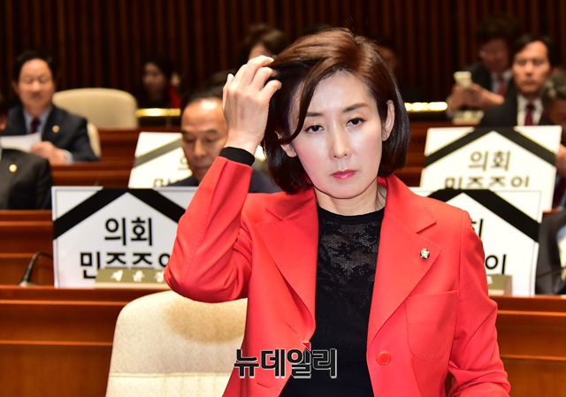 [포토] 머리 넘기는 나경원 한국당 원내대표