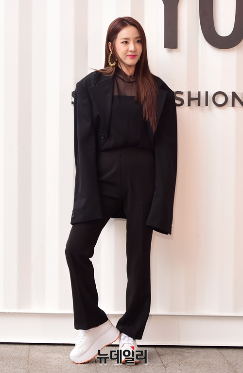 가수 산다라박이 20일 오후 서울 동대문디자인플라자(DDP)에서 열린 패션 스토어 육스(YOOX) 19SS 캡슐 컬렉션 런칭 기념 행사에서 포토타임을 갖고 있다.
