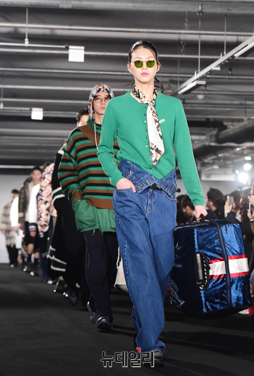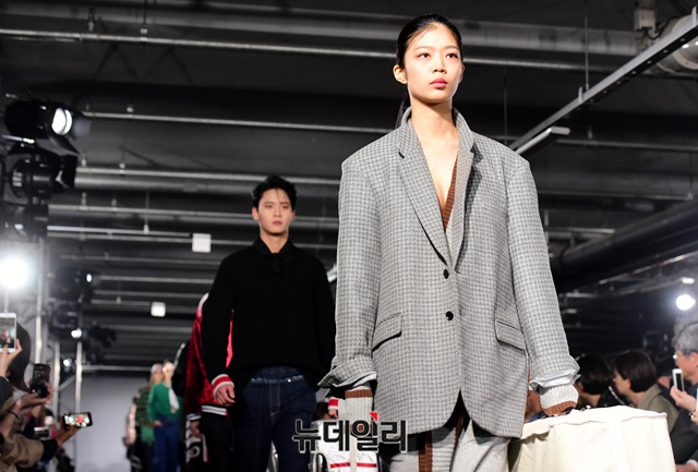 하동호 디자이너의 패션브랜드 '소윙바운더리스(SEWING BOUNDARIES)'가 20일 오후 서울 중구 동대문디자인플라자에서 열린 '2019 가을/겨울 서울패션위크'에서 런웨이를 선보이고 있다. 서울패션위크는 24일까지 동대문디자인플라자에서 진행된다.