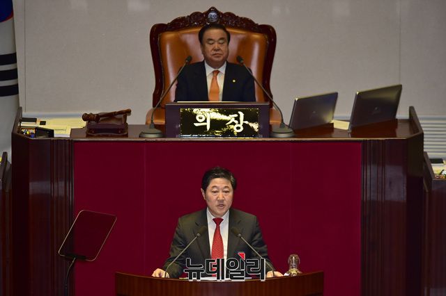 유기준 자유한국당 의원이 20일 오후 국회 본회의장에서 열린 외교·통일·안보분야 대정부질문에서 발언을 하고 있다.