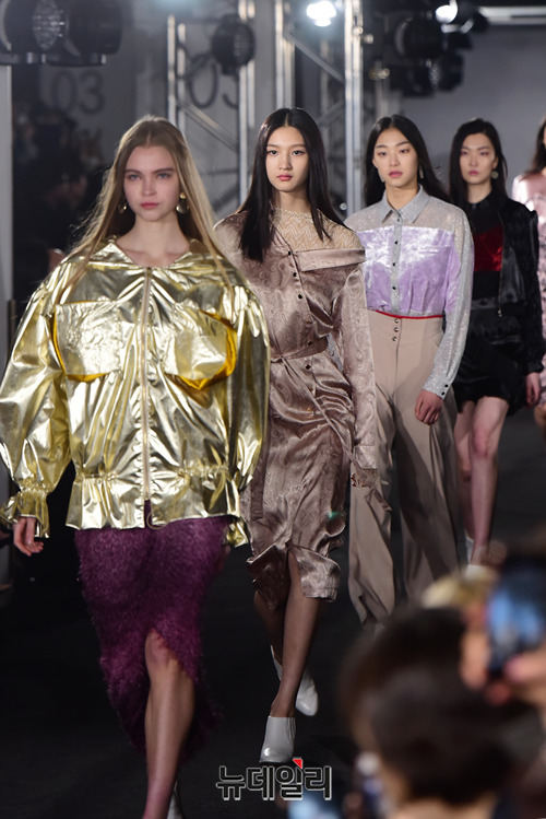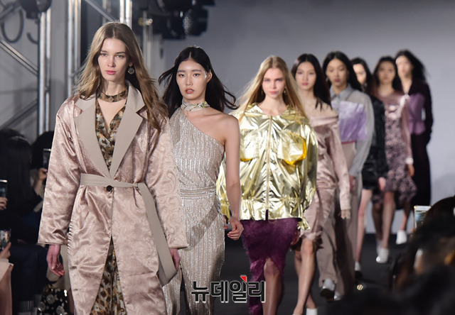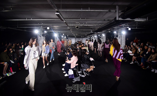 이청청 디자이너의 패션브랜드 'LIE(라이)'가 20일 오후 서울 중구 동대문디자인플라자에서 열린 '2019 가을/겨울 서울패션위크'에서 런웨이를 선보이고 있다. 서울패션위크는 24일까지 동대문디자인플라자에서 진행된다.