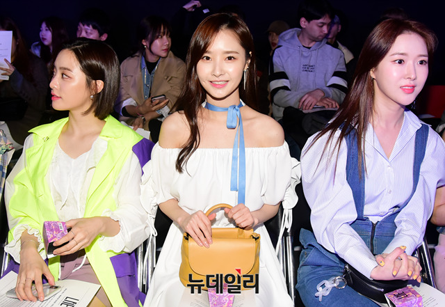 가수 우희가 20일 오후 서울 중구 동대문디자인플라자에서 열린 '2019 가을/겨울 서울패션위크'에 오른 브랜드 'LIE(라이)' 런웨이를 보기 위해 자리하고 있다.