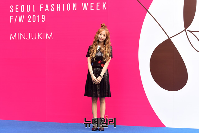가수 주니엘이 20일 오전 서울 중구 동대문디자인플라자에서 열린 '2019 가을/겨울 서울패션위크'에서 민주킴 런웨이에 앞서 포토타임을 갖고 있다.