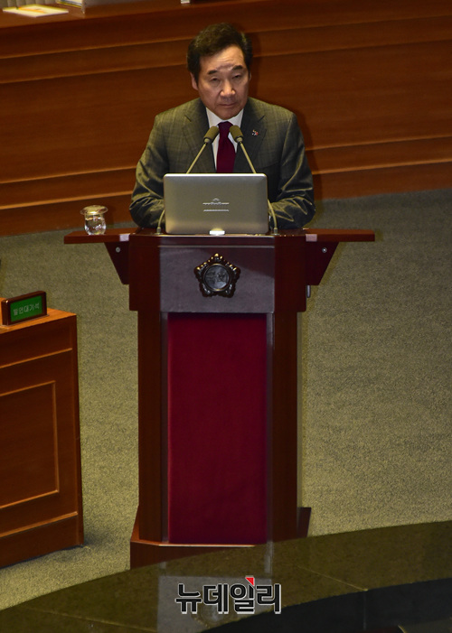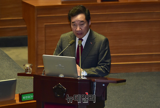 이낙연 국무총리가 21일 오후 국회 본회의장에서 열린 경제 분야 대정부질문에서 의원들의 질문에 답하고 있다.