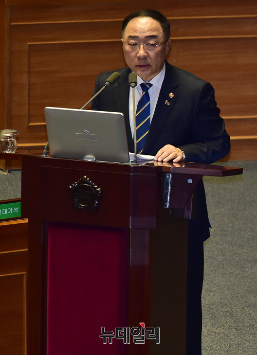홍남기 경제부총리 겸 기획재정부 장관이 21일 오후 국회 본회의장에서 열린 경제 분야 대정부질문에서 의원들의 질문에 답하고 있다.