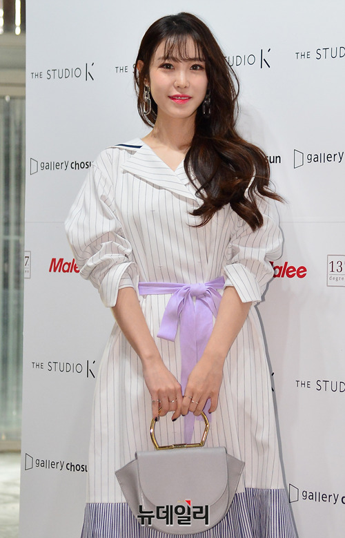 가수 전효성이 21일 오후 서울 종로구 갤러리조선에서 열린 '더스튜디오케이(THE STUDIO)' 2019 가을/겨울 컬렉션 행사에서 포토타임을 갖고 있다. 이번 컬렉션은 '서울의 색을 입다'라는 주제로 젊은 작가들의 실험적인 작업을 소개하고 전시한다. 21일까지 전시.