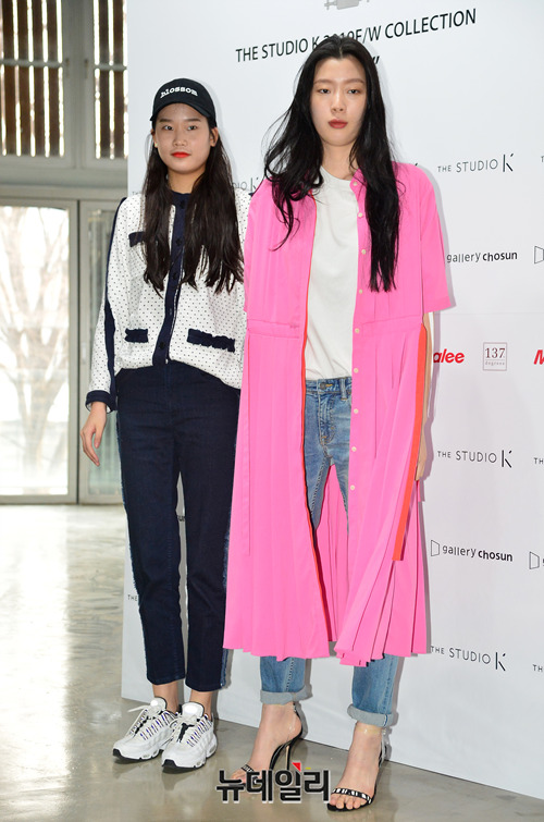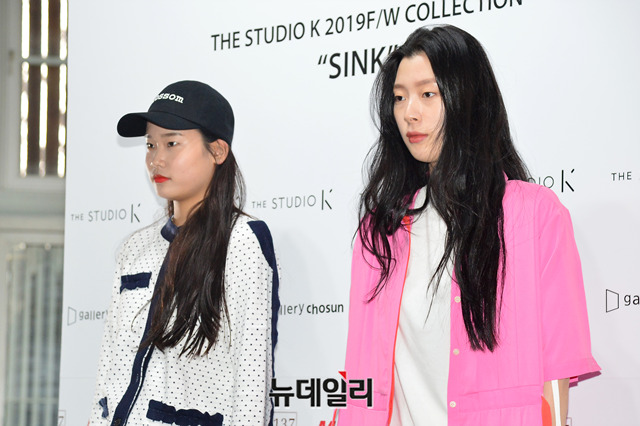 모델 김사라, 조앤박이 21일 오후 서울 종로구 갤러리조선에서 열린 '더스튜디오케이(THE STUDIO)' 2019 가을/겨울 컬렉션에 참석해 포토타임을 갖고 있다. 이번 컬렉션은 '서울의 색을 입다'라는 주제로 젊은 작가들의 실험적인 작업을 소개하고 전시한다. 21일까지 전시.