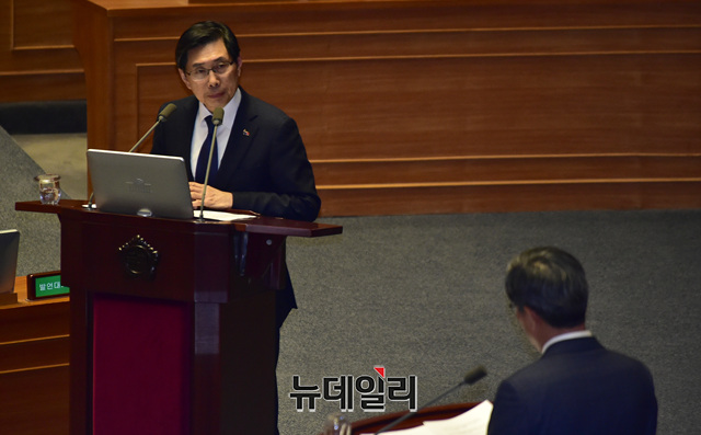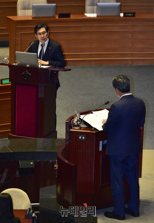 박상기 법무부 장관이 22일 오후 국회 본회의장에서 열린 교육·사회·문화에 대한 대정부질문에서 의원들의 질문에 답하고 있다.