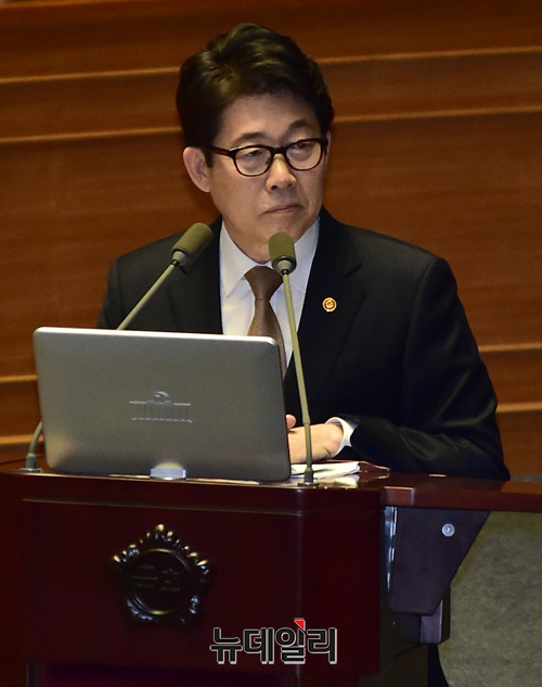 조명래 환경부 장관이 22일 오후 국회 본회의장에서 열린 교육·사회·문화에 대한 대정부질문에서 의원들의 질문에 답하고 있다.