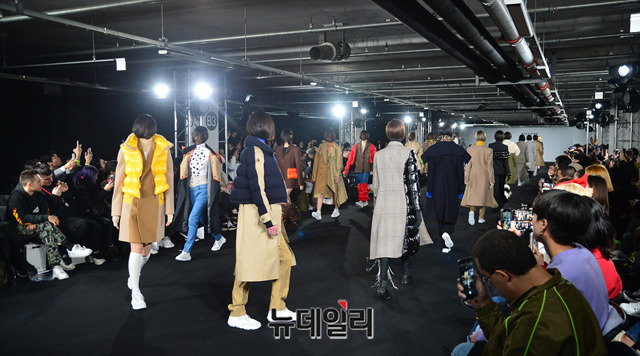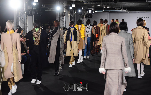 김보나, 임재혁 디자이너의 패션브랜드 '비스퍽(BESFXXK)'이 22일 오후 서울 중구 동대문디자인플라자에서 열린 '2019 가을/겨울 서울패션위크'에서 런웨이를 선보이고 있다. 서울패션위크는 24일까지 동대문디자인플라자에서 진행된다.