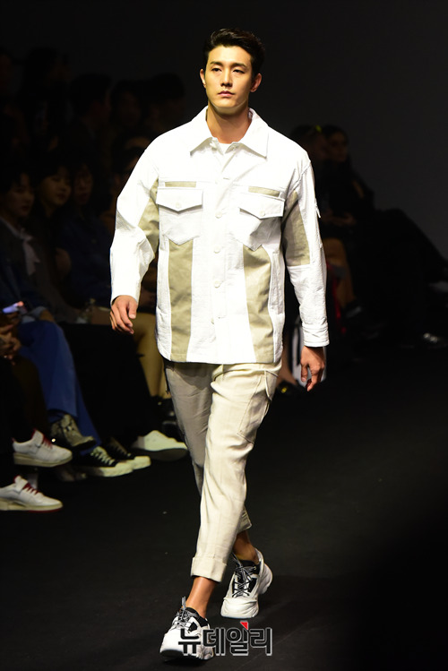 모델 이기우가 22일 오후 서울 중구 동대문디자인플라자에서 열린 2019 가을/겨울 서울패션위크 'SONGZIO HOMME(송지오 옴므)' 패션쇼에 참석해 런웨이를 선보이고 있다. 서울패션위크는 24일까지 동대문디자인플라자에서 진행된다.