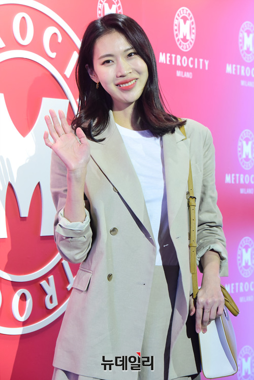 가수 천단비가 22일 오후 서울 강남구 더 라움에서 열린 '메트로시티 19F/W 패션쇼·파티'에 참석해 포토타임을 갖고 있다.