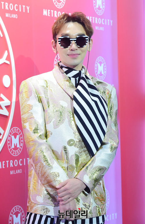 뮤지컬 배우 김호영이 22일 오후 서울 강남구 더 라움에서 열린 '메트로시티 19F/W 패션쇼·파티'에 참석해 포토타임을 갖고 있다.