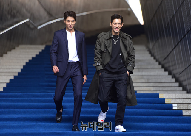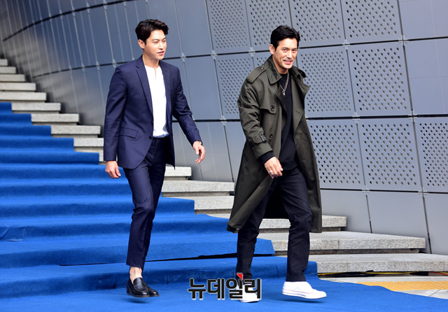 배우 오지호와 송종호가 22일 오후 서울 중구 동대문디자인플라자에서 열린 '2019 가을/겨울 서울패션위크'에 참석하고 있다.