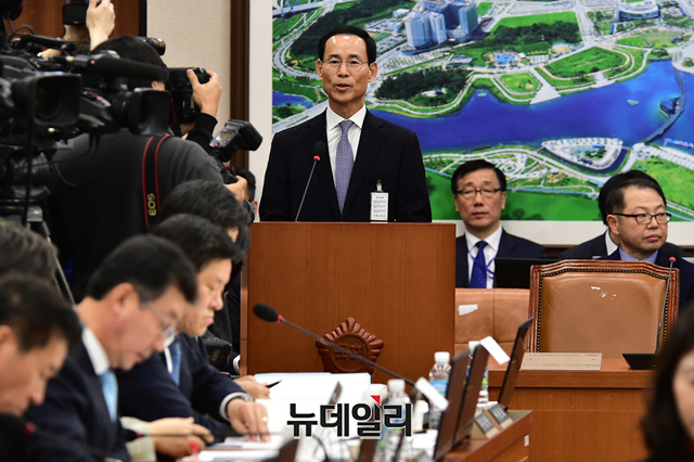 최정호 국토교통부 장관 후보자가 25일 오전 국회 국토위 전체회의실에서 열린 인사청문회에서 모두발언을 하고 있다.