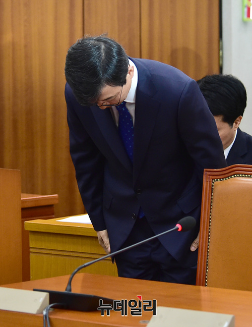 문성혁 해양수산부 장관 후보자가 26일 오전 국회 농림축산식품해양수산위원회에서 열린 인사청문회에서 의원들에게 인사를하고 있다.