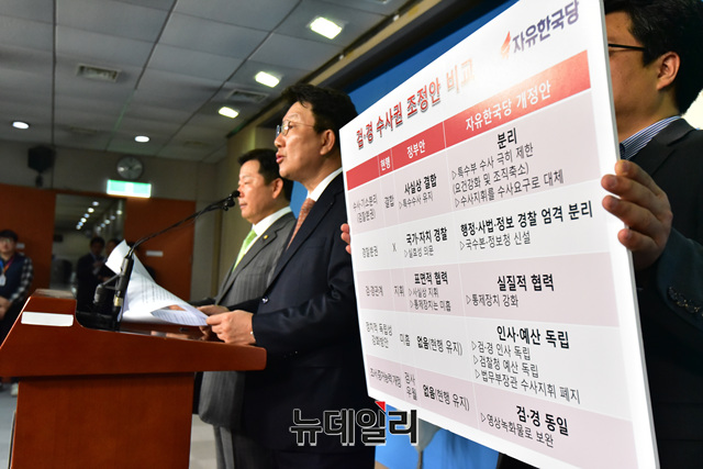[포토] 한국당 검경수사권 조정안 발표하는 권성동-이철규