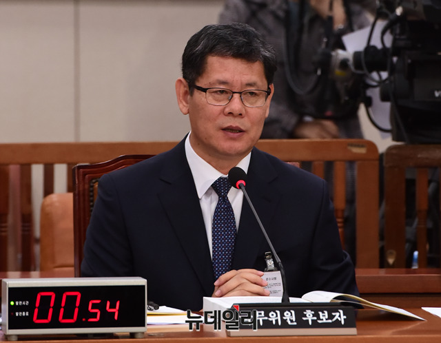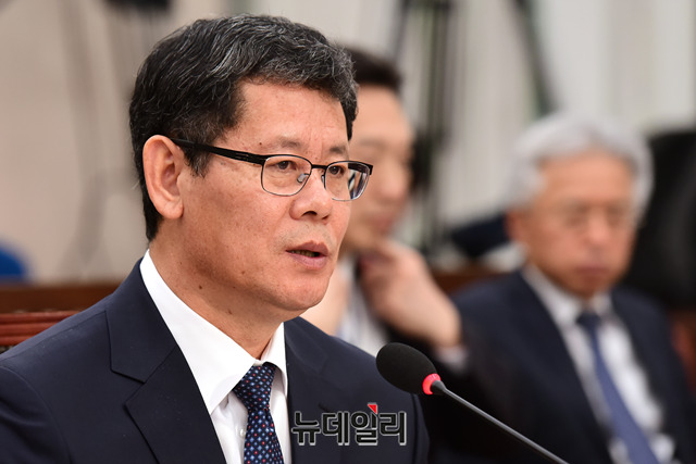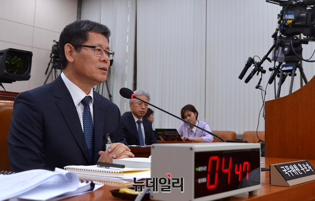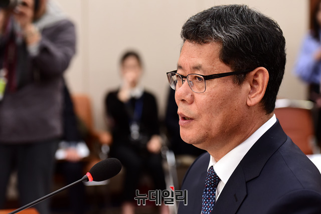 김연철 통일부 장관 후보자가 26일 오후 국회 외교통일위원회 전체회의실에서 열린 인사청문회에서 의원들의 질문에 답하고 있다.