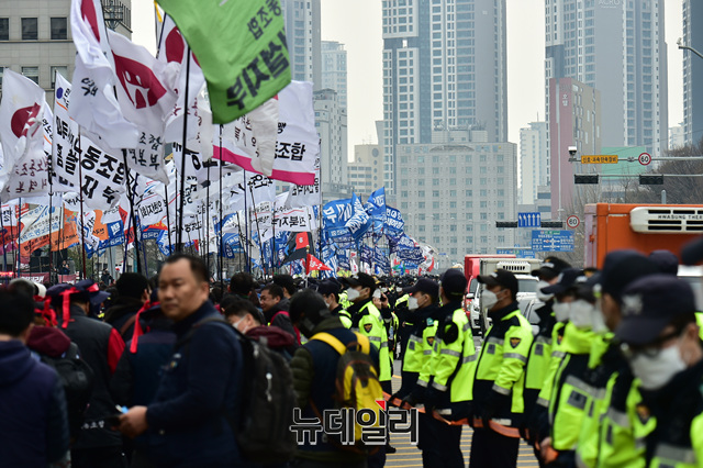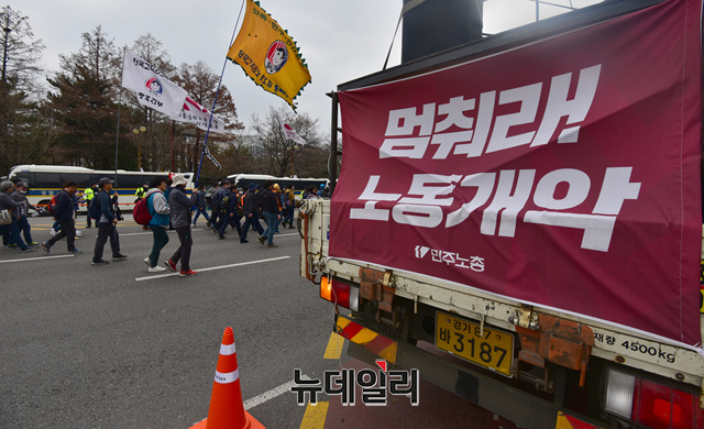 [포토] 행진하는 전국노동자대회 참석자들