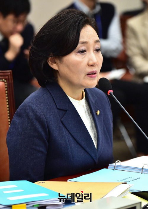 박영선 중소벤처기업부 장관 후보자가 27일 오후 국회 산업통상자원중소벤처기업위원회에서 열린 인사청문회에 출석해 의원들의 질문에 답하고 있다.