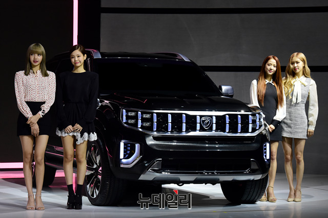 기아자동차의 글로벌 브랜드 홍보대사 걸그룹 '블랙핑크'가 28일 오전 경기 고양시 킨텍스에서 열린 '2019 서울모터쇼' 컨퍼런스에서 기아자동차 전시장에 방문해 포토타임을 갖고 있다.