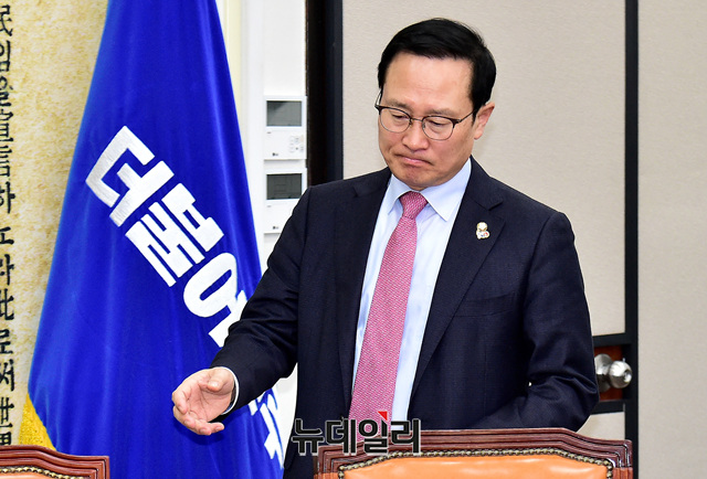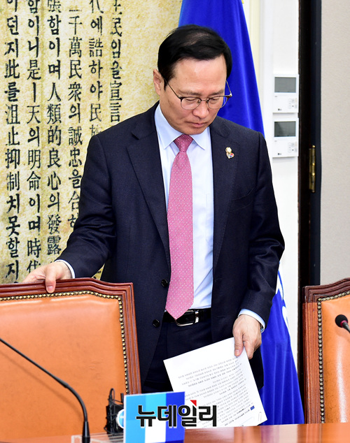 홍영표 더불어민주당 원내대표가 29일 오전 국회에서 열린 최고위원회의에 참석하기 위해 입장하고 있다.